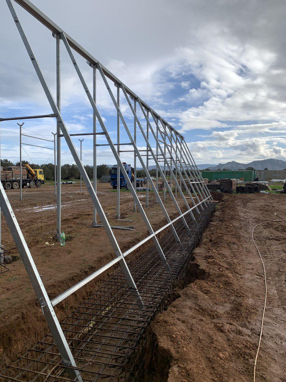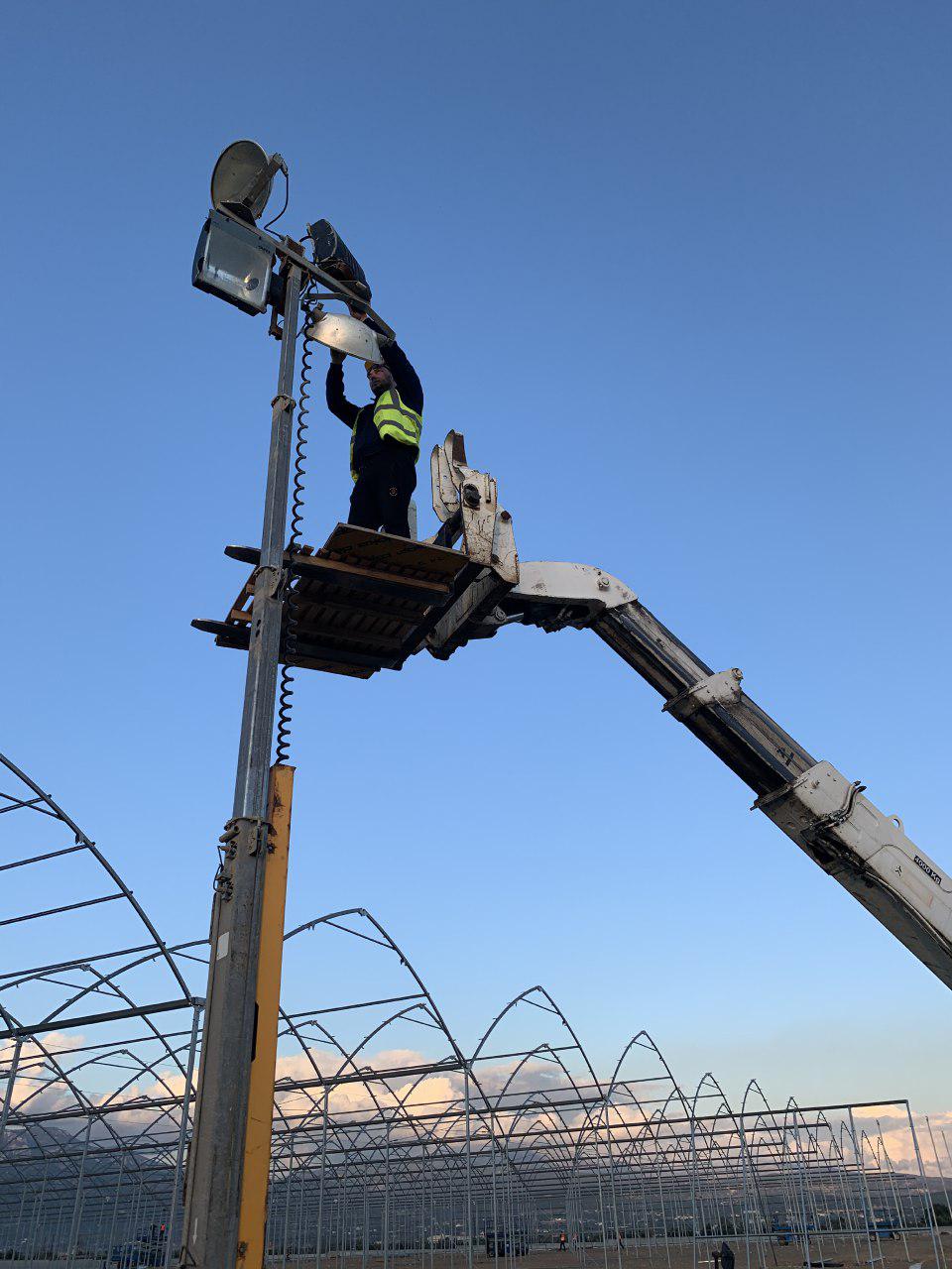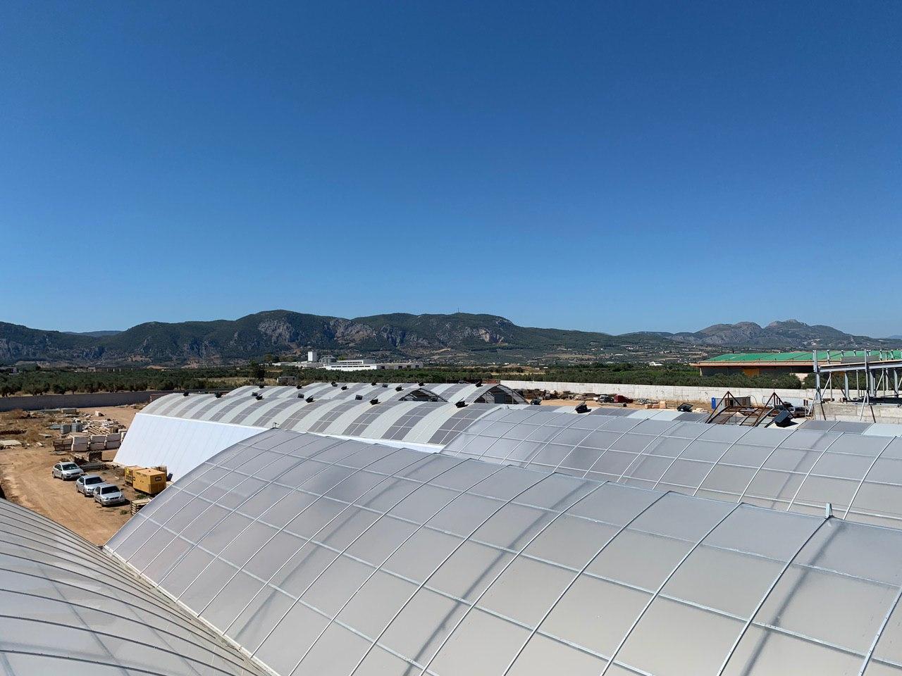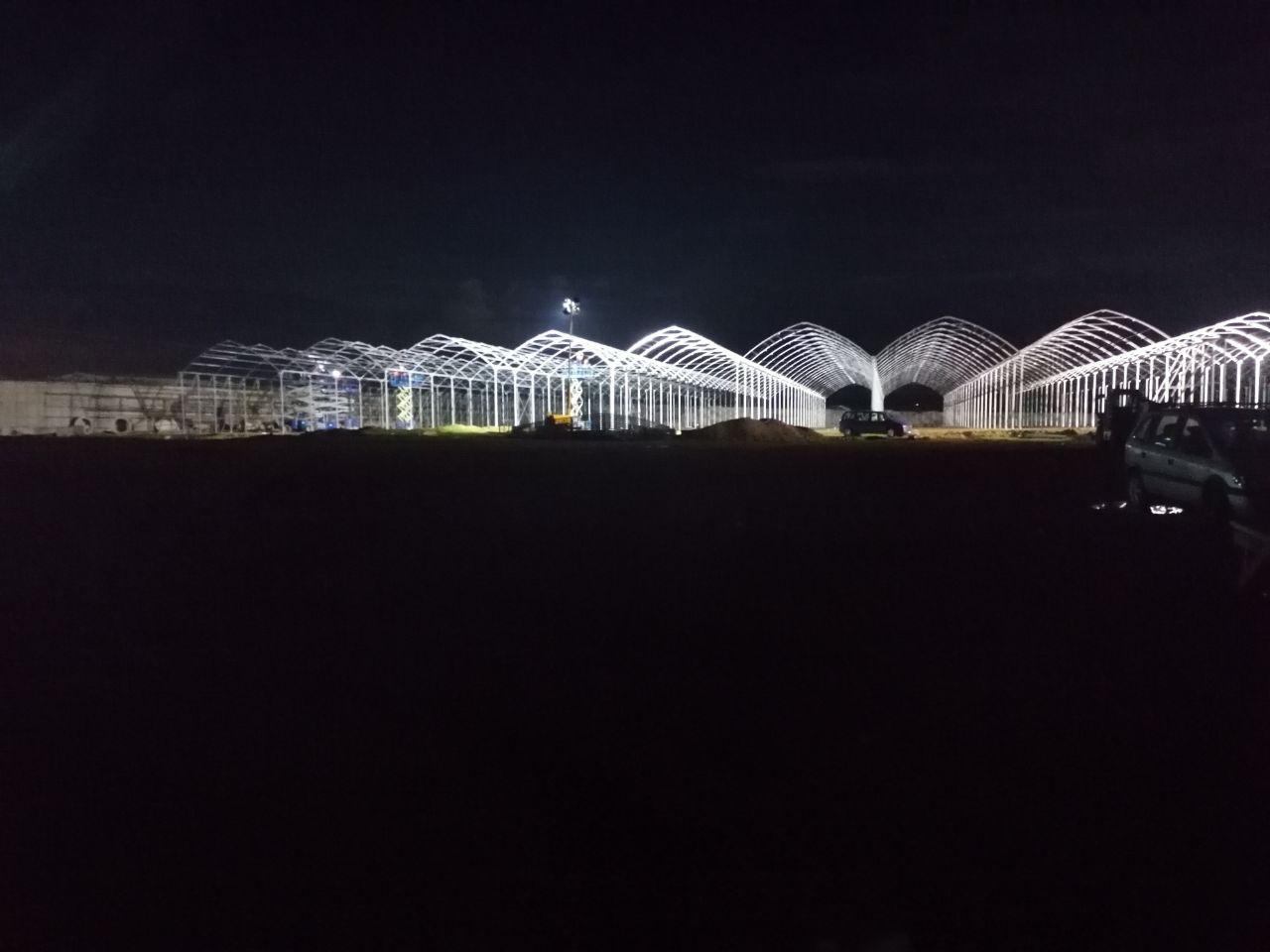 Building greenhouse phase A, covering, growing gutters and growing tables, mechanical ventilation, high pressure fogging, screen system, hot water heating, Par lighting, entrance pavilions, irrigation system, irrigation boom-nursery, electricity system, controlling system