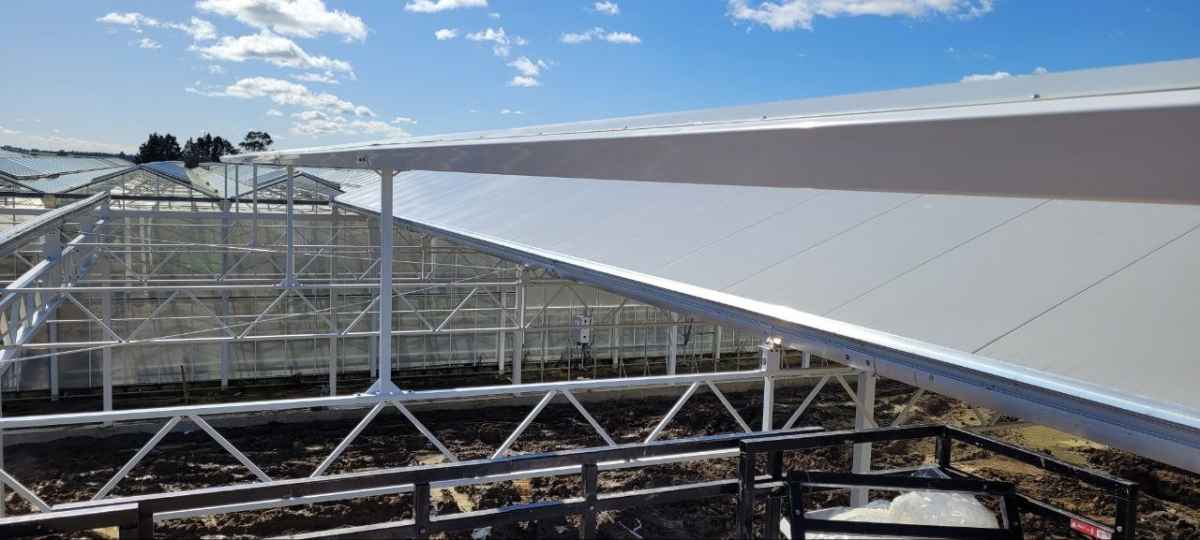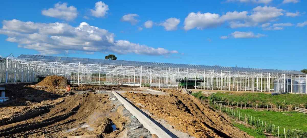 This project in New Zealand includes a comprehensive scope of greenhouse and infrastructure works. Our team is responsible for glazing the roof, sides, and gables, ensuring maximum light transmission and structural durability. The project also includes the installation of the main screen system and side screens for improved climate control and crop protection. In addition, we are constructing the packing hall structure with panel covering, creating an efficient space for post-harvest handling. To further support crop protection, the scope also includes the installation of a bug catcher system, helping maintain a controlled and healthy growing environment.